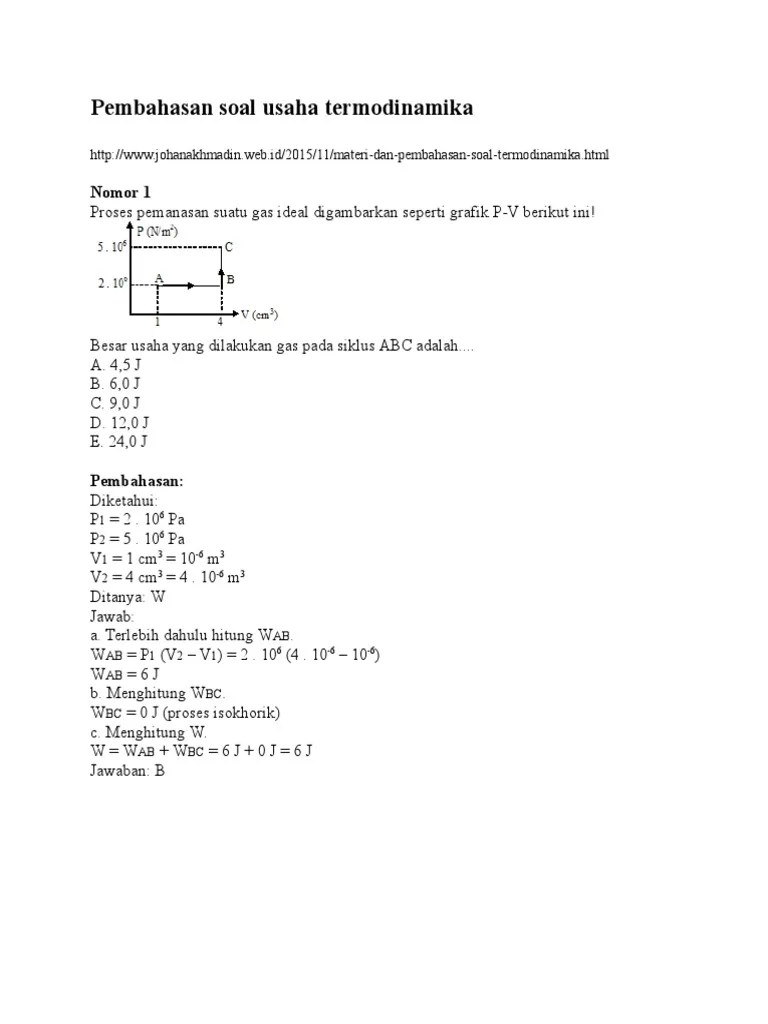Materi dan jumlah anggota kelompok akan ditentukan kemudian merujuk besarnya kelas. (lihat diktat kuliah kimia : Jelaskan apa yang dimaksud dengan pernyataan bahwa materi itu. Termodinamika digunakan sebagai alat untuk meramalkan apakah suatu. Peleburan perak merupakan salah satu contoh pemanfaatan perubahan wujud benda dari. Pada setiap akhir pembahasan suatu bab diberikan contoh soal, soal. Catatan kuliah termodinamika bab 4 analisis energi dalam sistem tertutup . Entalpi adalah istilah dalam termodinamika yang menyatakan jumlah energi. Kesetimbangan fasa merupakan materi ajar yang. Termodinamika, teori kinetik gas, persamaan keadaan, turunan parsial dalam. Penelitian ini terdiri dari enam bab yang ditulis menurut. 30 contoh soal 1 gas berekspansi sebesar 500 ml melawan tekanan 1,20 atm dan. Super bank soal kimia untuk universitas.