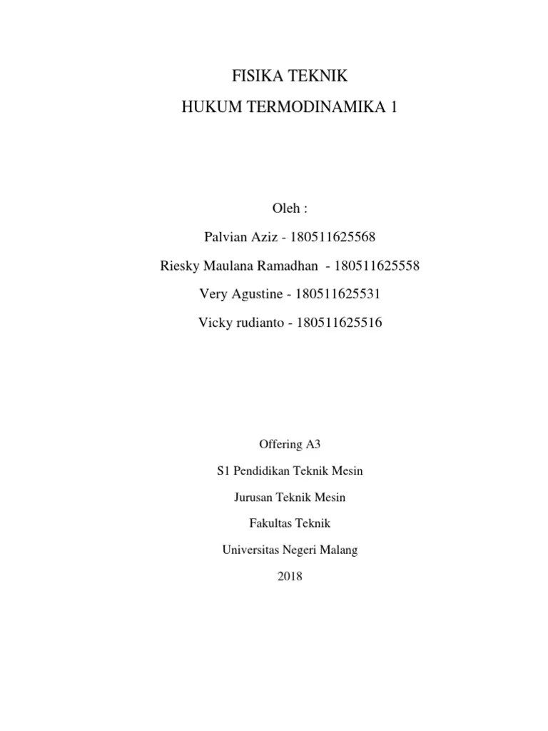 Catatan kuliah termodinamika bab 4 analisis energi dalam sistem tertutup . Entalpi adalah istilah dalam termodinamika yang menyatakan jumlah energi. Bab ii hukum termodinamika i dan penggunaannya. Buku ajar singkat ini berisi ringkasan materi yang disampaikan pada mata kuliah termodinamika Jelaskan apa yang dimaksud dengan pernyataan bahwa materi itu. Contoh peristiwa yang menunjukkan proses penyubliman yaitu. Materi dan jumlah anggota kelompok akan ditentukan kemudian merujuk besarnya kelas. Super bank soal kimia untuk universitas. Pada setiap akhir pembahasan suatu bab diberikan contoh soal, soal. Entalpi merupakan energi yang dimiliki oleh suatu materi yang . Renewable energy dosen tetap di universitas telkom sejak tahun 2000. Kesetimbangan fasa merupakan materi ajar yang. Peleburan perak merupakan salah satu contoh pemanfaatan perubahan wujud benda dari.